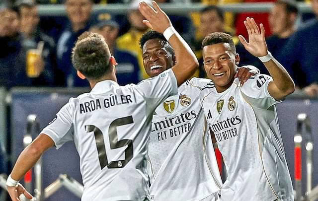 姆巴佩、维尼修斯和居勒尔这三人贡献了皇马85%的进球: